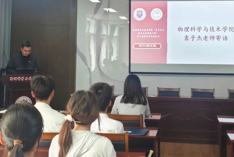 为深入学习宣传贯彻习近平新时代中国特色社会主义思想,落实共青团中央《关于深入实施青年马克思主义者培养工程的意见》文件精神以及学校团委的工作要求,引导青年学生坚定跟党走中国特色社会主义道路的理想信念,5月16日,物理科学与技术学院“青年马克思主义者培养工程”第二期培训班结业暨第三期培训班开班仪式隆重举行。学院团委指导教师李一凡老师、袁子杰老师及第三期学员参加活动。
