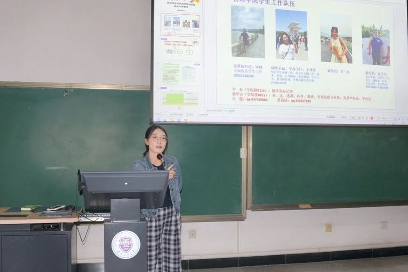 团委书记、学生工作办公室主任王亚琼老师向同学们介绍推免保研政策和资助政策。她勉励同学们大学要把学业摆在突出位置,同时积极参加各类活动,提升综合素质。在资助政策上,重点围绕助学金的申请条件、资助标准以及发放方式向同学们进行了说明,确保家庭经济困难的学生能享有平等的教育机会。