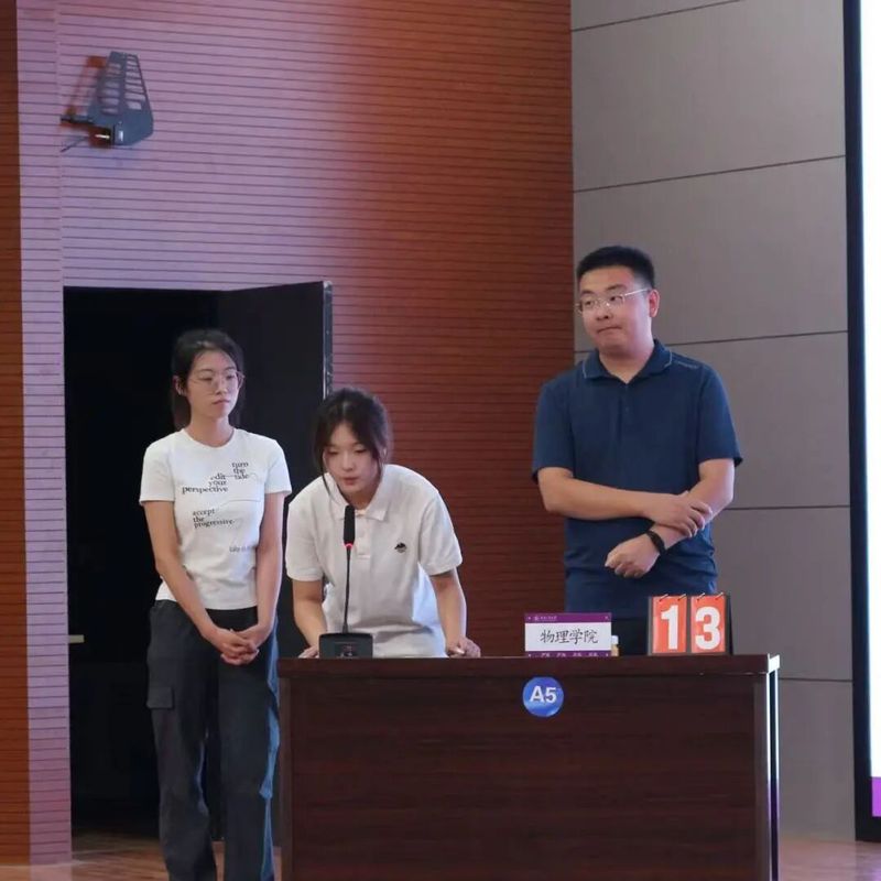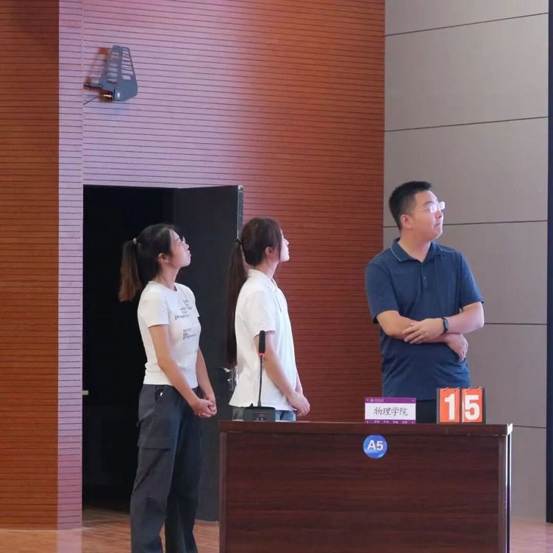 在第二轮的抢答环节,袁子杰老师出色的反应能力,为队伍夺得一次又一次的答题机会,选手们沉着冷静、踊跃作答,展现出扎实的理论功底和高效的团队协作,博得现场观众阵阵热烈掌声。经过激烈角逐,最终物理科学与技术学院王雨萌同学和魏欣彤同学在辅导员袁子杰老师的带领下,荣获比赛一等奖。