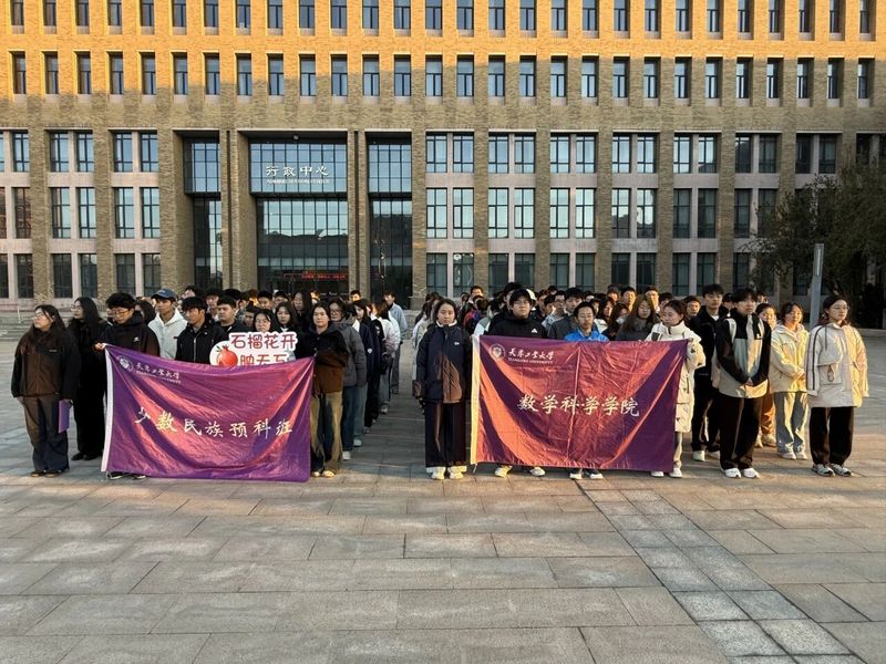 金秋十月,秋风送爽。为进一步学习习近平新时代中国特色社会主义思想和习近平强军思想,进一步培育和践行社会主义核心价值观,坚定同学们对中国特色社会主义的道路自信、理论自信、制度自信、文化自信,10月27日,物理科学与技术学院联合数学科学学院、少数民族预科班师生代表举行了以“赓续初心承薪火 青春报国建新功”为主题的升旗仪式。